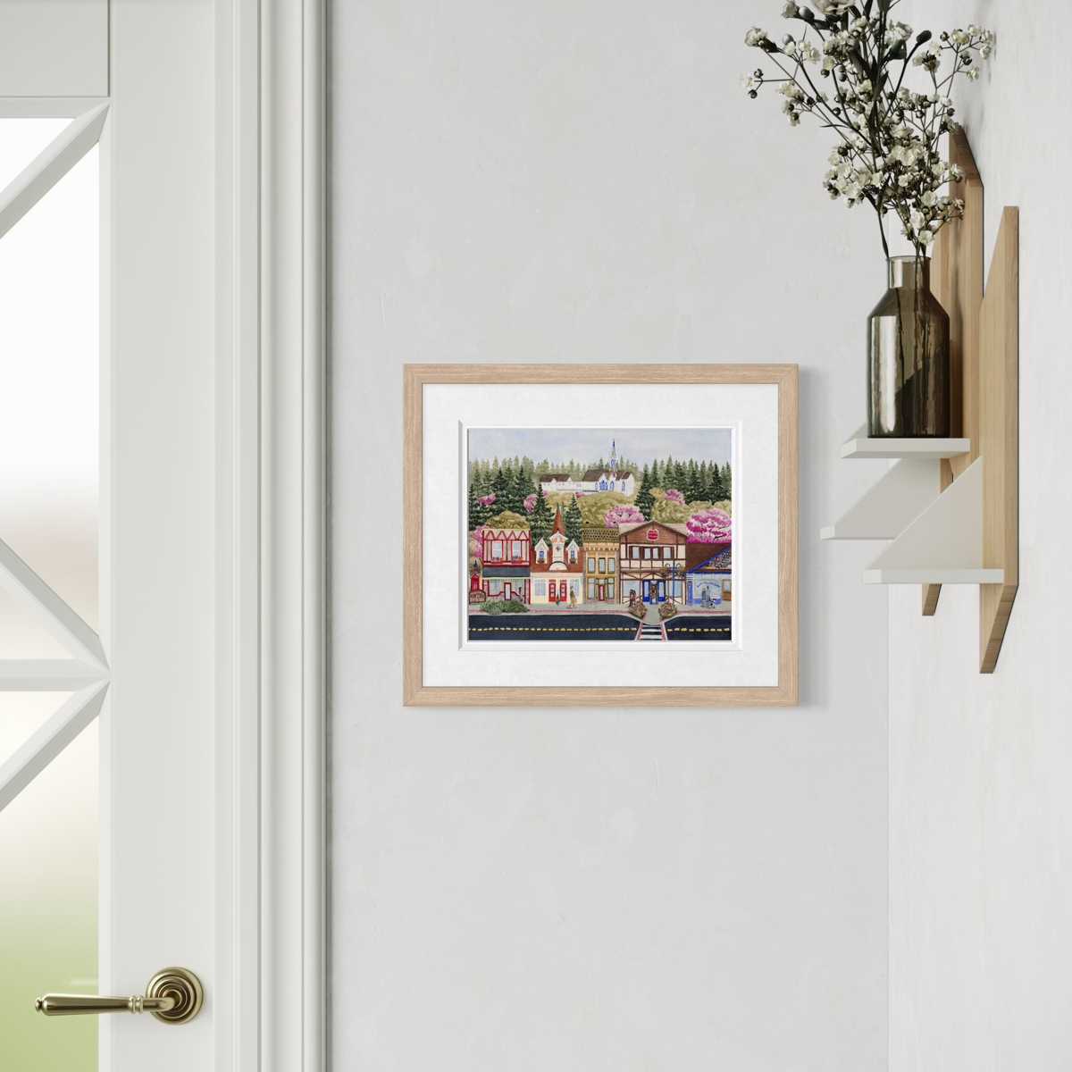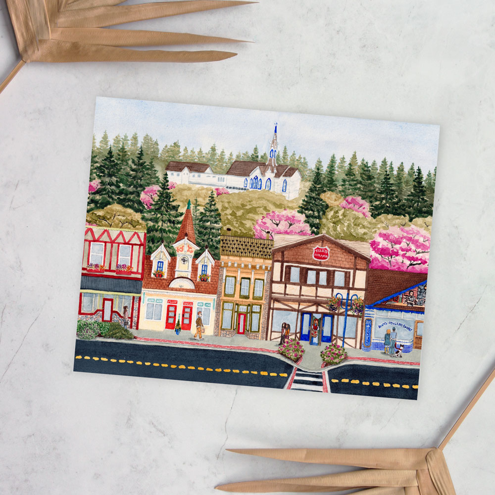 Giclée art print of the beautiful and historic Norwegian themed town of Poulsbo, WA in the spring. Originally hand painted by Stacey Berglind, this high quality reproduction print goes perfectly in your home, office, restaurant or makes an excellent gift to remember your Washington travels.